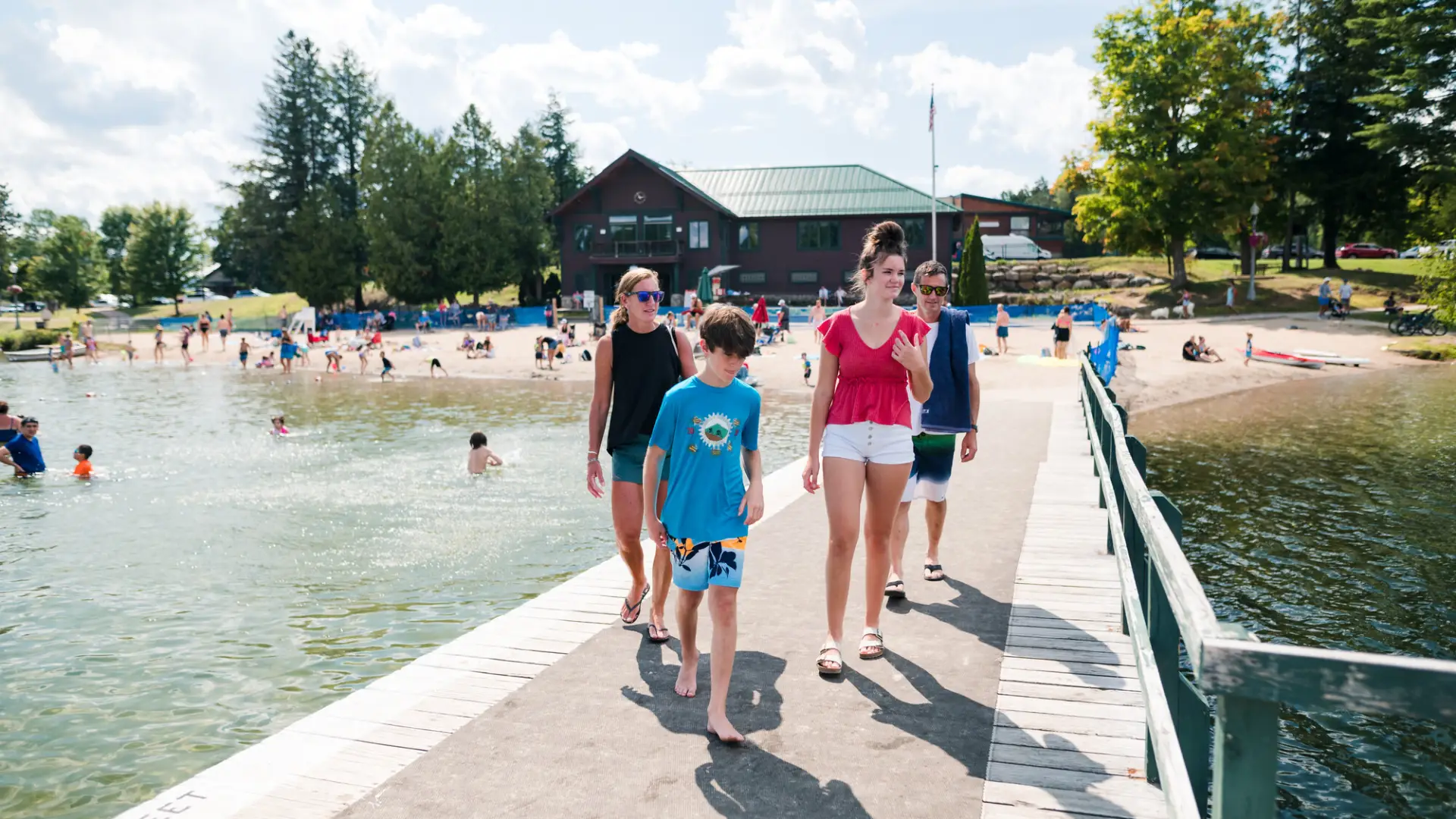 Every July, the Mirror Lake Beach is an ideal place to watch the Independence Day fireworks and to witness the beginning of the Ironman Lake Placid triathlon. The competition begins with an early-morning, 2.4-mile swim that ends at the beach.