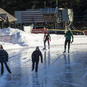 We slip into our skates for the first time of the season at the outdoor rink best known as Lake Placid Olympic Oval. My blades are rusty and I thrust my foot down the throat of the boot, trying to make my it pair with the skate. Eyes are pulled out of...
