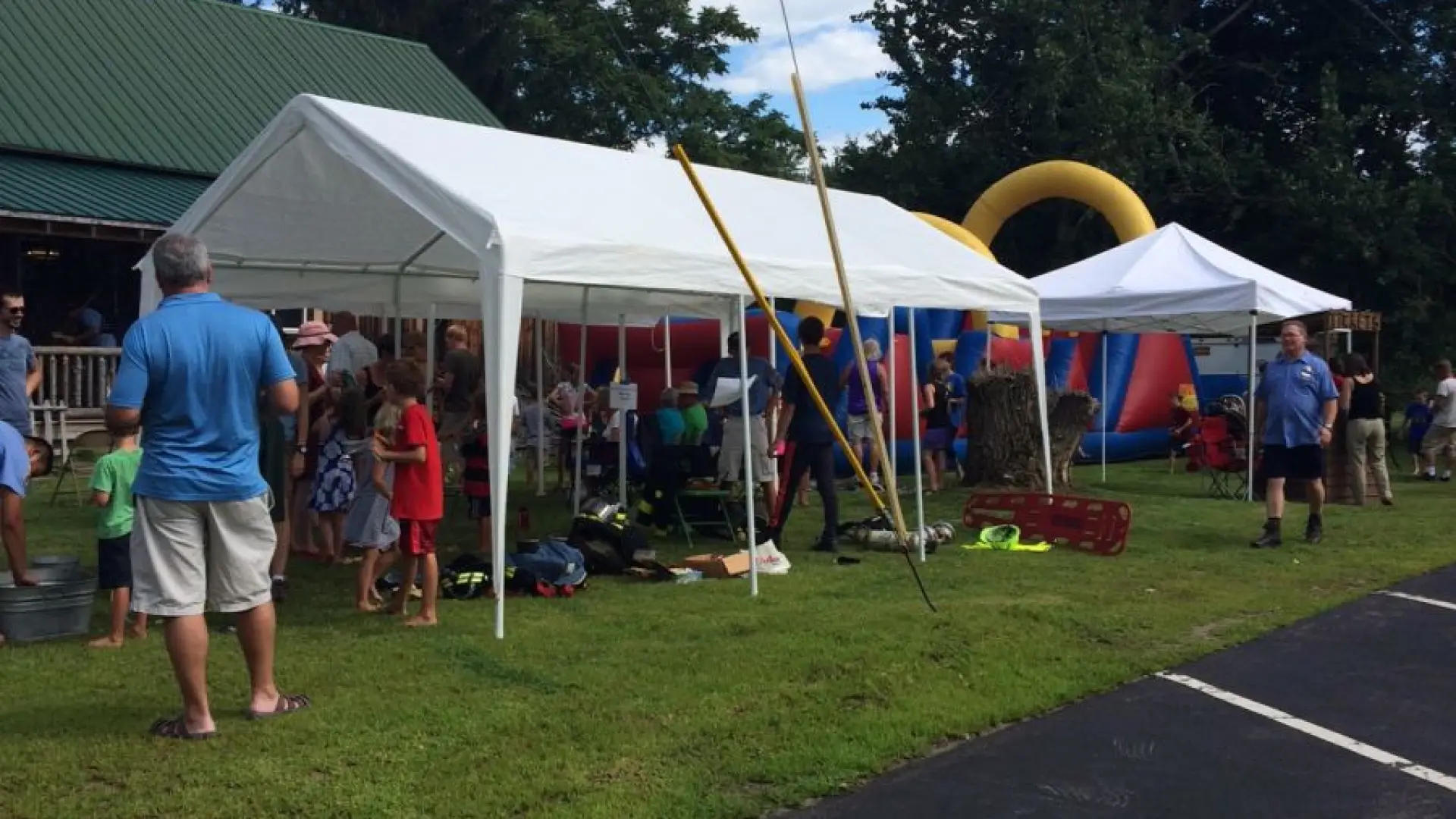 The activities at a field day are one thing, but I know I was looking forward to the food! The chicken dinner ($12 per person/adult) was fantastic, cooked by some of our firefighters over a 20-foot long coal fire pit. More than 500 pieces of chicken went quick, and it was delicious. Of course, salads were plentiful, as well as typical picnic fare: beans, rolls and dessert. I couldn’t pass up the brownie with chocolate ice cream – boy, was I stuffed!